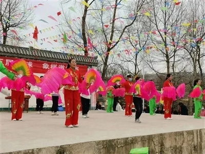 当天村里的小广场上,演出队员们身着各色表演服装,敲起欢快的锣鼓,洋溢着欢乐的笑容,他们挥舞着扇子、展示着歌喉,用自编自演的内容,演出了一年丰收的喜悦。现场观看的群众络绎不绝,不时报以热烈的掌声。篮球、象棋、弹弓、拔河、跳绳等体育赛事同时开展,小村庄里不时传来的阵阵歌声、喝彩声、欢呼声传递着文明新风尚,体现了村民团结向上的精神面貌。
