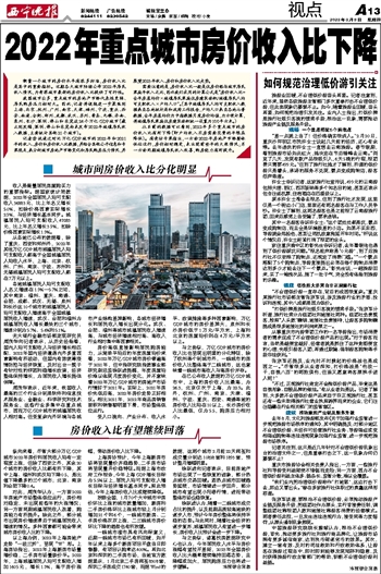2022年重点城市房价收入比下降