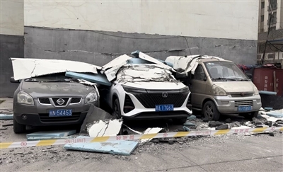 3月23日,城北区海湖茂源阳光小区居民致电晚报热线反映,3月22日晚一阵大风刮落了楼体的外墙保温层,导致他们停在楼下的三辆私家车被砸,希望记者予以关注。