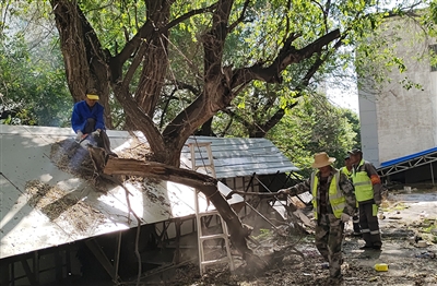 据城中区市政公用服务中心古树保护专业人士介绍,树木的树根需要吸收足够的养分才能健康生长,古树尤其如此,硬化路面、建筑物距离古树过近,会限制古树根系周围土壤透水透气,影响古树生长,为此,他们当时做树池防护栏的时候,技术人员已在这三棵古树根部下方埋了透气管,做过一些保护处理,能够让古树根系透水透气,每年对古树施肥、浇水,进行病虫害防治、涂白、防腐及修复树皮等工作。因002号古树的许多分枝已经长在了商铺屋顶上方,古树管养人员上不去无法养护古树。就此,市林业和草原局绿委办相关工作人员表示,6月16日,他们已组织专业人员将古树枯死的树枝全部清理。