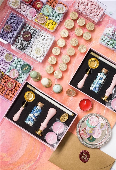 用烛火、电加热器具等将火漆蜡、糖等加热融化,再用印章按压成各种造型,时下,火漆印章在网络平台的销量相当可观,深受青少年欢迎。