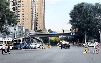 在西杏园桥(柴达木路西杏园村口)记者看到,几名行人想横穿马路,却被过往车辆堵在了马路中间,车流量变小后才过了马路。路口有交通信号灯,马路上没有斑马线,大部分行人选择横穿马路通行,选择从天桥上过马路的行人寥寥无几。马路的南北两侧都有公交站,尤其是北侧的公交站,位置正对着路口。路口人流量、车流量均大,一名女士两手拉着两个孩子正准备横穿马路,见要乘坐的公交车到站,不顾过往车辆直奔公交车,看得人直冒冷汗。记者粗略统计,20分钟内有60余人横穿马路。采访中,不少市民说,天桥两侧都是台阶,没有无障碍通道也没有电梯,很多老年人腿脚不方便,不愿上下楼梯就横穿马路。记者数了一下,天桥单侧有40多层台阶,如果是行动不便的老人过马路的确存在问题。