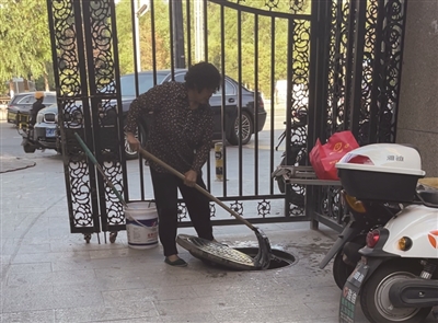 8月30日,记者来到斗行街隆豪恒基小区,看到2单元北侧有一口井,井盖上标注有供水二字,井盖放在一边,井内有不足一米深的积水,水质较清,保洁人员正在井中洗涮拖布,不时还将洗洁精挤到拖布上再反复放入井中。保洁人员说,因为楼道内污渍比较多,用桶接水洗涮不干净,而井中的水比较多,洗涮起来方便又干净,所以自己每天将井盖打开后洗涮拖布,听说井中的水会直接流进下水道中,所以也没有多想。