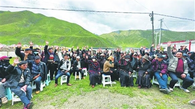 “前不久,村里召开2023年草皮费收入公开群众大会,大家对公开宣布的收入结果很满意,都是举手赞成,很高兴!今年的草场收入有底了!”9月的代曲村天高地阔,在村集体经济全民入股畜牧业合作社,村民扎西跟记者分享着他的喜悦。