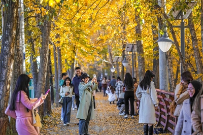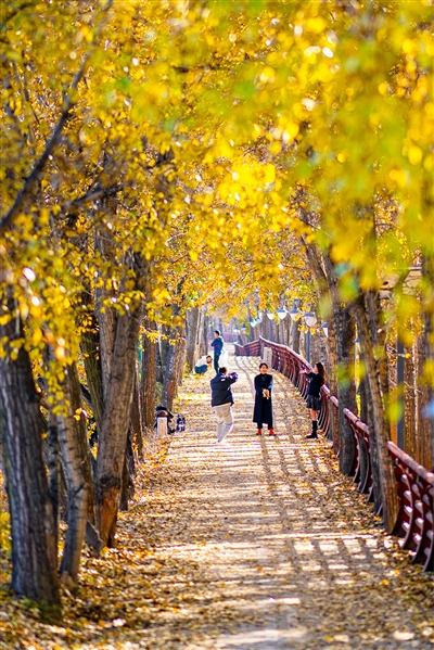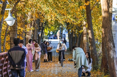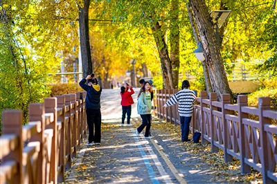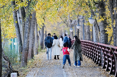 深秋时节,在我市北川河湿地公园,碧水潺潺,蓝天白云,高楼倒映湖面,交相呼应中呈现了最美的秋景画。走在人行步道上,踩着一地的落叶缤纷,犹如人在画中游。