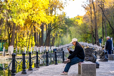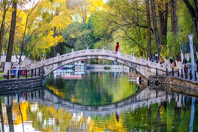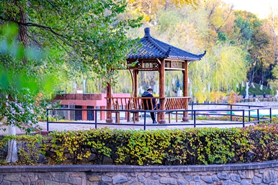 享受秋日惬意时光,绕不开植物园里的一草一木。园内有一处,白墙青瓦曲径通幽,湖泊小桥相映成趣,这里的秋景更有一番风味。