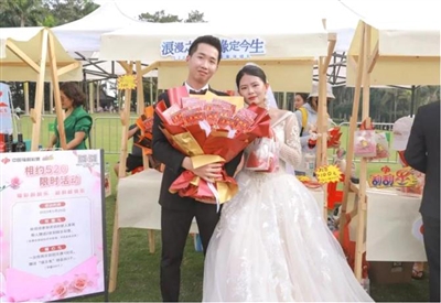 南宁青秀山风景区见证了一场公益集体婚礼。手拿“心相连”刮刮乐的夫妻喜笑颜开,心相连、手相牵,幸福到永远,收下刮刮乐的祝福,他们开启人生新阶段。