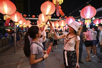 大年初九,在马来西亚槟城州首府乔治市古迹区,一年一度的槟城庙会如期举行。当地民众与游客纷纷前来体验传统文化,感受热情洋溢的春节氛围。新华社发(许馨予 摄)