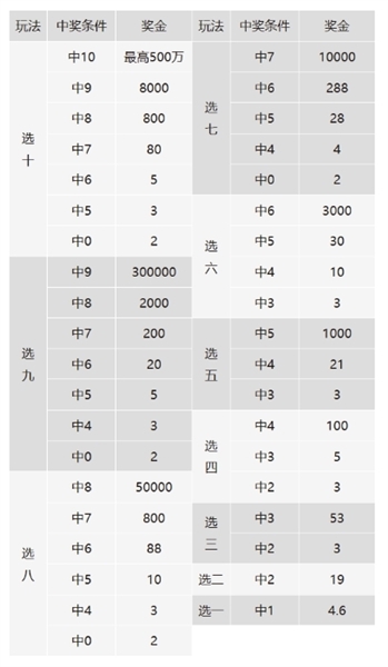选十、选九、选八、选七玩法中,若投注号码与开奖号码全不同,也能获得2元奖金,让游戏体验感大大加分。随着快乐8被越来越多的人熟悉,喜爱快乐8的人也越来越多。
