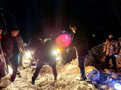 2月26日傍晚,果洛州玛多县境内的玛积雪山垭口,因遭受连日来的暴雪天气影响,一辆载有乘客的大巴车和12辆小型客车被困垭口,总计63名群众受困在-23℃的极端天气中,加上玛积雪山垭口海拔有4650米,车辆和人员寸步难行,还有随时发生的高原反应等其他危险悄悄逼近……