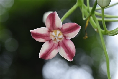 “秉滔大花藤”因其宽卵形的花冠裂片、花冠内表面紫红色等特征,与原大花藤属的其他物种相区别。经过几年来的形态对比鉴定和分子验证研究,科研人员确定该植物为鹅绒藤属一新种,并以著名植物学家李秉滔教授的名字作为拉丁名种加词词源,命名为“秉滔大花藤”。