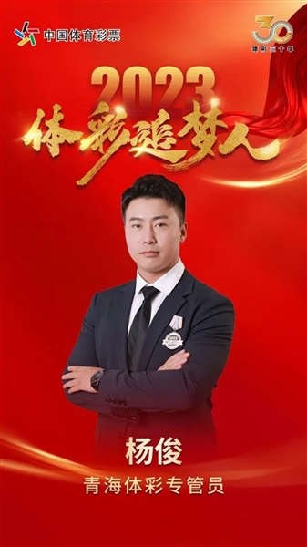 杨俊在负责青海县城实体店管理期间,每天早出晚归,任劳任怨,不断拓展体彩实体店数量,带动当地市场规模稳步增长。在业务部和市场部工作期间,他撰写“青海体彩实体店形象建设指导手册”,指导了全省600家实体店形象改造,助力体彩公益事业高质量发展,荣获“2023体彩追梦人”称号。