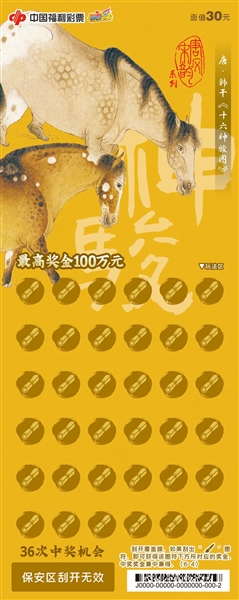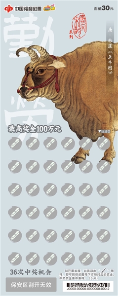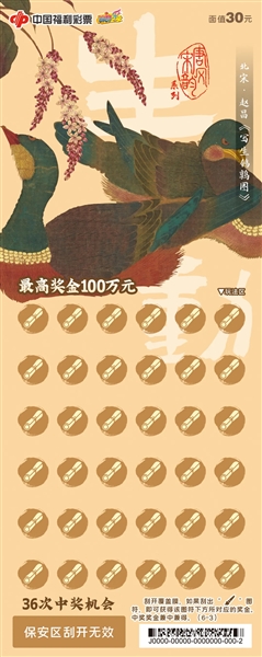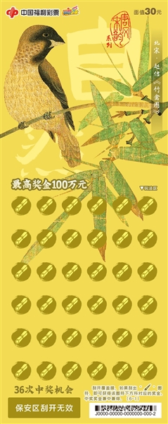 刮刮乐“唐风宋韵”以唐代和宋代名家的绘画作品作为设计元素,《竹禽图》《五牛图》《写生鹌鹑图》……各种动物活灵活现,简单的线条搭配恰到好处的配色,又因注入画家的情感而呈现出生命的意蕴,让人爱不释手。
