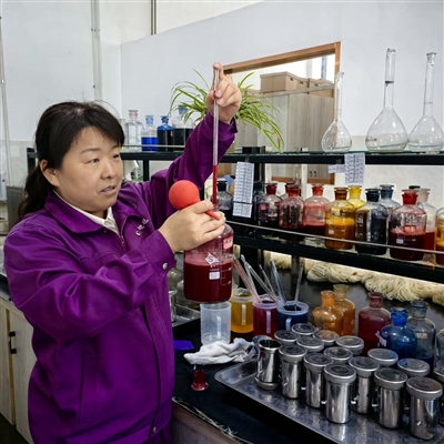 从踏进地毯行业的大门开始,她就主动学习专业知识,将理论与实践相结合,不断充实地毯纱染色知识。从染色化验室的创建、染料助剂的挑选,到染纱车间的规划设计、设备选型、工艺制定以及新员工培训,她都亲力亲为,逐步成长为车间技术骨干。