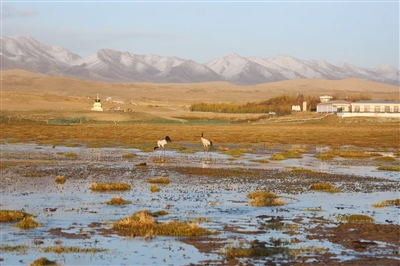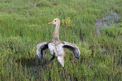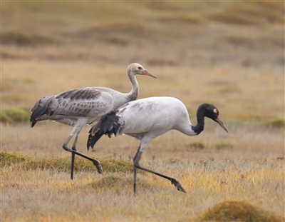 小泊湖湿地繁殖黑颈鹤启程南飞