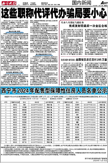 西宁市2024年配售型保障性住房人员名单公示