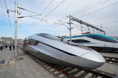“CR450动车组最大的创新突破,就是列车以时速400公里运行时,噪声、制动距离、能耗等指标与既有复兴号时速350公里运行时相当。”CR450动车组技术牵头单位、铁科院集团公司首席研究员赵红卫说。