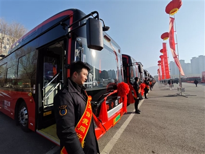 本报讯(记者 一丁摄影报道)西宁人的新年福利来了!过年期间除了可以感受2000余场文化活动外,还可以乘坐过年氛围感拉满、融入雪豹元素、科技与狠活并存的红彤彤新公交车出行。1月22日上午,2025西宁公交集团新能源公交车交车仪式举行,副市长韩兴斌出席仪式。今年首批350辆新能源纯电动公交车正式上线运营,它们将分别在33路、58路、48路等14条城市公交线路和巡游公交线路上服务。