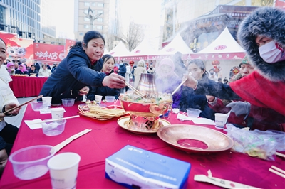 人们自发三五成群、亲密无间地围坐一处。大家手中的筷子不停挥动,纷纷夹起锅中鲜嫩可口的食材,迫不及待地送入嘴中,大快朵颐。与此同时,人们还兴致勃勃地畅快交谈,分享着美食带来的愉悦,也交流着生活中的趣事,欢声笑语交织在一起,如同一首欢快的乐章,在广场上空此起彼伏,将现场的热闹氛围推向了高潮,处处洋溢着浓郁的烟火人情。