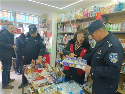 近日,兴海路街道兴胜巷社区联合辖区派出所、市监所、城管中队开展校园周边经营场所安全大检查活动,检查范围覆盖学校周边200多米范围内的文具店、书店、商店和饭店等,现场工作人员仔细排查是否存在售卖含有不良信息的书籍、刊物、音像制品等,严厉打击“黄毒”相关物品的流通,清查是否有劣质文具、过期食品等危害学生健康的商品在售,全力杜绝各类安全隐患,清除违规行为,筑牢校园安全防线。 毓洛 摄