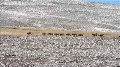 近年来,随着青海生态环境保护工作的不断推进,三江源核心区的玉树州各市县经常出现各种国家级保护动物,狼群也多次被生态管护员及当地百姓记录。2024年1月,有管护员就在麻多乡境内记录下狼群觅食的珍贵画面。同年3月18日,生态管护员加羊多杰在果洛州玛多县黄河源园区黄河乡境内的黄河冰面上,拍摄到十多匹狼组成的“行军”队伍,队伍行进有序,展现了狼群良好的团队意识和严明的纪律。2025年2月22日,果洛州玛多县境内黄河源头出现了一支18匹狼的庞大狼群,加羊多杰成功拍摄到这一壮观场景。而他曾在2024年3月拍摄到这个狼群,当时数量为12匹,时隔一年狼群数量增加,反映出当地生态环境的持续改善。