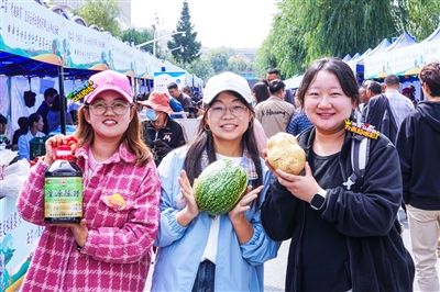 “洋芋好了,快来免费品尝!”在巴燕乡特色乡土产品展示区,新鲜出锅的炕锅土豆四处飘香,不少市民游客争相过来品尝,不一会,满满一锅就被一抢而空。“这是我们新寺村的洋芋,都是新鲜出土,味道特别好!”展区工作人员说。在波航乡特色乡土产品展示区,42斤重的大南瓜成为了“镇摊之宝”,还有只有观赏作用的“看瓜”、海棠果、农家梨等,都是特意从乡上农户家采收过来进行展示的,每个农产品都是人气十足。“我们的长寿豆饱满清甜,紫色小西红柿小巧鲜亮,来品尝的人都说好吃!”波航乡农产品推荐官马丽说,“今年雨水好、光照足,家家户户都是大丰收!”