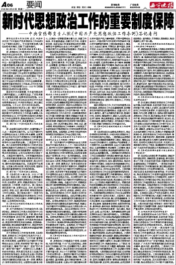 ——中央宣传部负责人就《中国共产党思想政治工作条例》答记者问