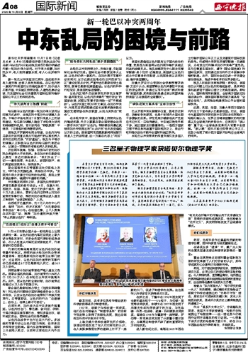 量子力学在1925年诞生,今年正值百年。诺贝尔物理学委员会主席奥勒·埃里克松当天表示,百年来量子力学不断带来新的惊喜,它大有用处,为数字技术提供了基础。