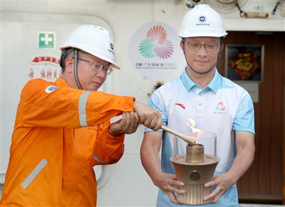 10月9日,第十五届全国运动会、全国第十二届残疾人运动会暨第九届特殊奥林匹克运动会火种采集仪式在广州举行。全运圣火“源火”来自南海1500多米深海底,通过引燃可燃冰的方式获取。
