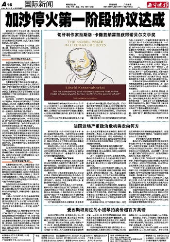 匈牙利作家拉斯洛·卡撒兹纳霍凯获得诺贝尔文学奖