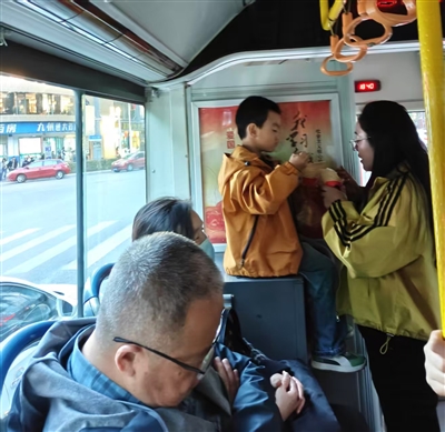 近日,记者乘坐车牌号为青A·076303的10路公交车时看到,因车内没有空余座位,一女子将孩子抱起坐在设备箱上吃零食,该箱体距离地面一米多高,两人均没有抓紧扶手,若遇到紧急情况车辆急刹,很容易出现安全事故,希望广大乘客能够安全文明乘车,杜绝此类危险行为。王凌 摄
