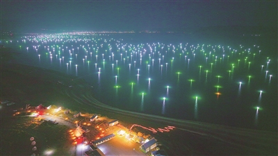10月17日,龙羊峡库区水面亮起盏盏渔灯(无人机照片)。新华社记者 齐芷玥 摄