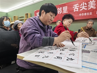 近日,中华巷社区组织辖区居民举办庆重阳主题活动,老人们踊跃参加,纷纷在现场挥毫泼墨书写重阳诗词,既展示了“草根派”书法技艺,也弘扬了传统文化,丰富了辖区老年人的日常文化生活。