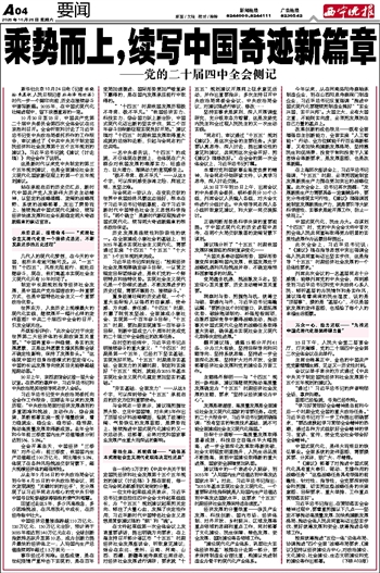 10月20日至23日,中国共产党第二十届中央委员会第四次全体会议在北京胜利召开。全会听取和讨论了习近平总书记受中央政治局委托所作的工作报告,审议通过了《中共中央关于制定国民经济和社会发展第十五个五年规划的建议》。习近平总书记就《建议(讨论稿)》向全会作了说明。