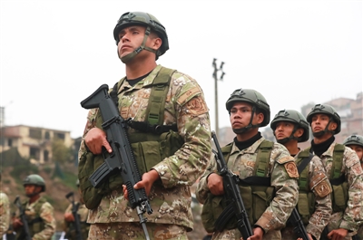 10月25日,在秘鲁首都利马,士兵列队准备巡逻。