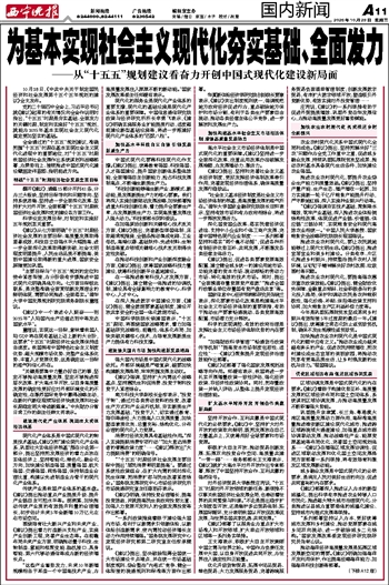 全会通过的“十五五”规划建议,准确把握“十五五”时期在基本实现社会主义现代化进程中的重要地位,对“十五五”时期我国经济社会发展作出系统谋划和战略部署,为乘势而上、接续推进中国式现代化建设擘画宏伟蓝图、指明前进方向。