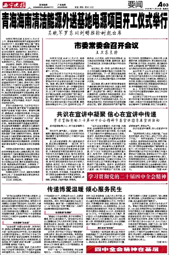 会议传达学习习近平总书记在纪念胡耀邦同志诞辰110周年座谈会上的重要讲话精神、对全面依法治国工作作出的重要指示和中央全面依法治国工作会议精神。强调,要认真学习胡耀邦同志的崇高精神风范和优良作风,进一步锤炼坚强党性、锐意改革进取、厚植为民情怀,以身作则、以上率下加强作风建设,积极营造浓厚的干事创业氛围,在坚定拥护“两个确立”、坚决做到“两个维护”上见思想见行动见实效。要认真践行习近平法治思想,紧紧围绕中央全面依法治国工作会议部署,着眼服务保障全市中心工作,坚持科学立法、严格执法、公正司法、全民守法协同推进,全力推动法治领域重大部署、重要任务、重点工作落地见效,加快建设更高水平的法治西宁。