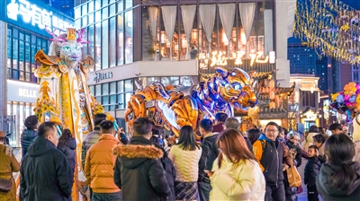 本报讯(记者 张国静)寒冬时节,城西区唐道·637商圈却人气爆棚。12月26日18时30分许,随着机甲龙王与金钱豹两大巨兽艺术装置相继登场,一场为期近一个月的冬春季旅游促消费活动正式拉开序幕。活动现场人潮涌动,市民和游客纷纷举起手机,给巨兽拍照。