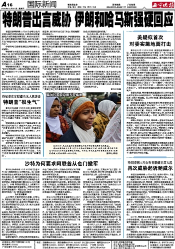特朗普出言威胁 伊朗和哈马斯强硬回应